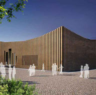 该综合体结构的特性来源于实际会产生建造过程。建筑立面采用用于电影院地下室开挖的槽型板条。因此,空间外壳是一个地下室形式的直接反映。这样的做法不但自然地产生了建筑的基本立面形式,也有助于建筑的隔热保温性能。
